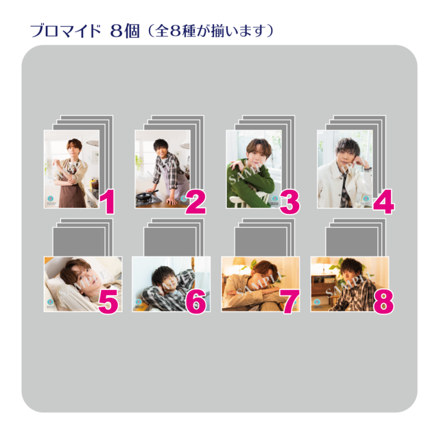 2026年2月付ふ日開催イベント 「SECOND LINE Presents みんなに会いに行くよ! 第33回 in 広島」販売商品 ●商品コード:SLZZZ-00832 ●お届け:2026年4月下旬以降順次 (価格表記下に現在表示されてる発送予定日は商品公開日から起算される仮予定日です。正式な発送予定日ではございません。お届け予定日の目安は「●お届け:」の表示がある場合、「●お届け:」に記載されている時期が出荷目安となります(お届け日(到着日)ではございません)) ※数に限りがございます。先着順、なくなり次第終了となりますので、ご了承ください。 ※こちらの通販でお申込み頂いた商品は【2026年4月下旬】以降のお届け予定になります。 ※発送予定日は目安になります。発送が遅れるまたは発送予定日が延期になる可能性がございます。 ※発送予定日は目安になります。商品の完成状況によってお届けが極端に早まる場合がございます。その為、配送先住所は現在の住所にて設定をお願い致します。予めご了承ください。 ※転居などによりお届け先が変更になった場合、お届け先の事前変更はできません。発送後に変更となります。ご了承ください。 ※ご注文後の注文内容の変更は承れませんのでご了承ください。 ※発送予定日は商品到着予定日ではございません。商品を発送する予定日になります。 ※ご予約・ご注文状況によっては発売日にお届けできない場合もございます。予めご了承ください。 ※複数の予約商品を同じカートに入れてご購入頂いた場合は、ご購入いただいた予約商品のうち一番遅い発送予定日の商品と合わせて発送になりますが、商品によってはそれぞれの商品発送日が異なる場合がございます。予めご了承ください。 ※商品の発送は商品によって複数個口になる場合がございます。また、発送日が異なる場合がございます。予めご了承ください。 ※商品の発送は決済順ではございません。発送倉庫現地の環境状況や発送準備内容、お客様の注文内容により前後致します。 ※倉庫在庫が優先となります。商品在庫はイベント物販在庫と共有しているため、ご注文のタイミングによってはご注文後であっても在庫がなくなる場合がございます。また、予期せぬ事態による商品欠品(長期保管による商品不良等)により、ご注文後であっても在庫がなくなる場合がございます。 ※倉庫在庫の反映はリアルタイム反映ではございません。他のお客様とのご注文タイミングによってはご注文後であっても在庫がなくなる場合がございます。 ※予期せぬ事態による商品欠品(長期保管による商品不良等)などにより、ご注文商品の商品内容を揃えることができない場合がございます。その場合はご注文をキャンセルとさせていただきます。また、お客さまのお手元にて商品不良が発覚し、その際の交換品在庫がない場合もご注文をキャンセルとさせていただきます(お手元の商品をご返却いただき、返金処理を行わせていただきます)。なお、当店側の問題が起こった場合を除き、キャンセルを承ることはできません。 ※他のお客さまの決済処理漏れによるキャンセル等によっては、売り切れであっても後日ご注文いただける場合がございます。 ※イベント会場とは価格は異なります。 ※不良品以外の交換対応はできかねます。 ※デザイン、仕様は予告なく変更になる場合がございます。予めご了承ください。 ※画像はイメージです。実際の商品とは異なります。 ※ランダム販売です。全8セットのうち、いずれか1セットが入っています。 ※1セット4枚入り。全8セット。ブロマイドの柄は全32点。ブロマイドセット1、2、3、4、5、6、7、8のセットのランダム販売になります。 ※各セットの写真がランダムになっていることはございません。 ※セット1、2、3、4、5、6、7、8で全32点の柄が揃います。 ※ブロマイドセット1、2、3、4、5、6、7、8には、出演者(笠間淳さん、小林裕介さん)のうち、4枚の写真が含まれます(例:セット1 笠間淳さんソロショット、小林裕介さんソロショット、笠間淳さんソロショット、笠間淳さん&小林裕介さんのツーショット。セット2 小林裕介さんソロショット、笠間淳さんソロショット、小林裕介さんソロショット、笠間淳さん&小林裕介さんのツーショット等)。 ※出演者ひとりにつき、写真の柄はソロショット12枚(笠間淳さんソロショット12枚、小林裕介さん12枚)、笠間淳さん&小林裕介さんツーショット8枚ございます。 ※複数個購入した場合、必ず異なるセットになるとは限らず、重複することがございますので、あらかじめご了承ください。 ※ブロマイドのセット、柄を指定いただくことはできません。 ※笠間淳さん、または、小林裕介さんのサイン入り+直筆手書きコメント入りデコレーションブロマイド(直筆サインと直筆コメントのみの場合もございます)がランダム封入されている場合がございます(笠間淳さん、または、小林裕介さんサイン入り+直筆手書きコメント入りデコレーションブロマイド各人全10種各1枚)。 ※サ