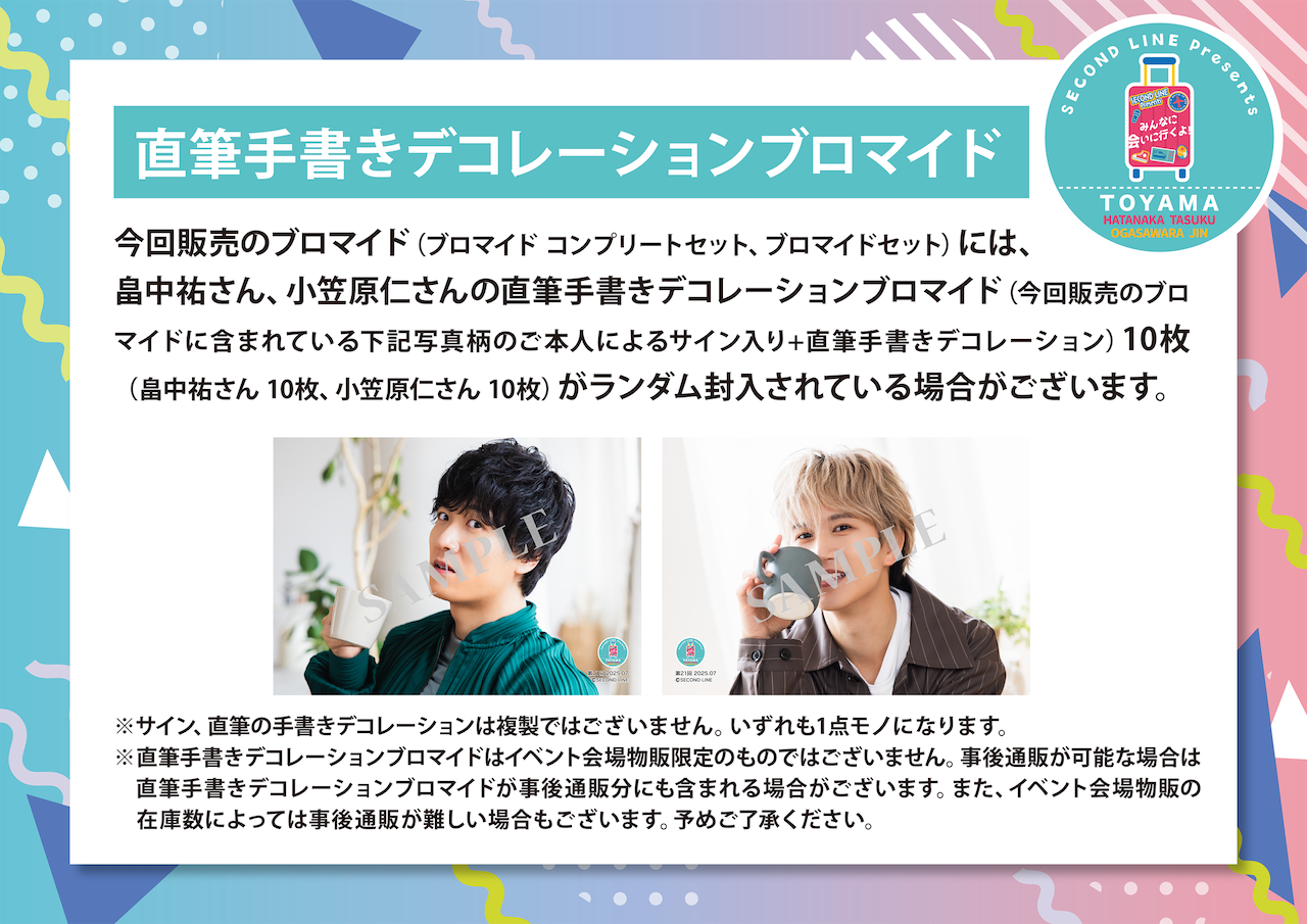 ※畠中祐さん、小笠原仁さんのサイン入り+直筆手書きコメント入りデコレーションブロマイドがランダム封入されている場合がございます(畠中祐さん、小笠原仁さんサイン入り+直筆手書きコメント入りデコレーションブロマイド各人全10種各1枚)。