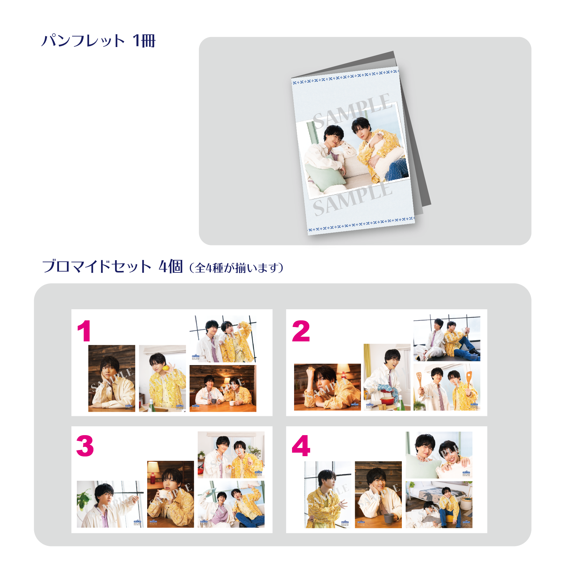 さらにイベント会場物販購入特典の「たすくとしょうや 第45回、第46回 開催日入り記念ブロマイド」全4種をグッズセット通販特典としてプレゼント(イベント会場物販購入特典はなくなり次第終了となります。予めご了承ください)!