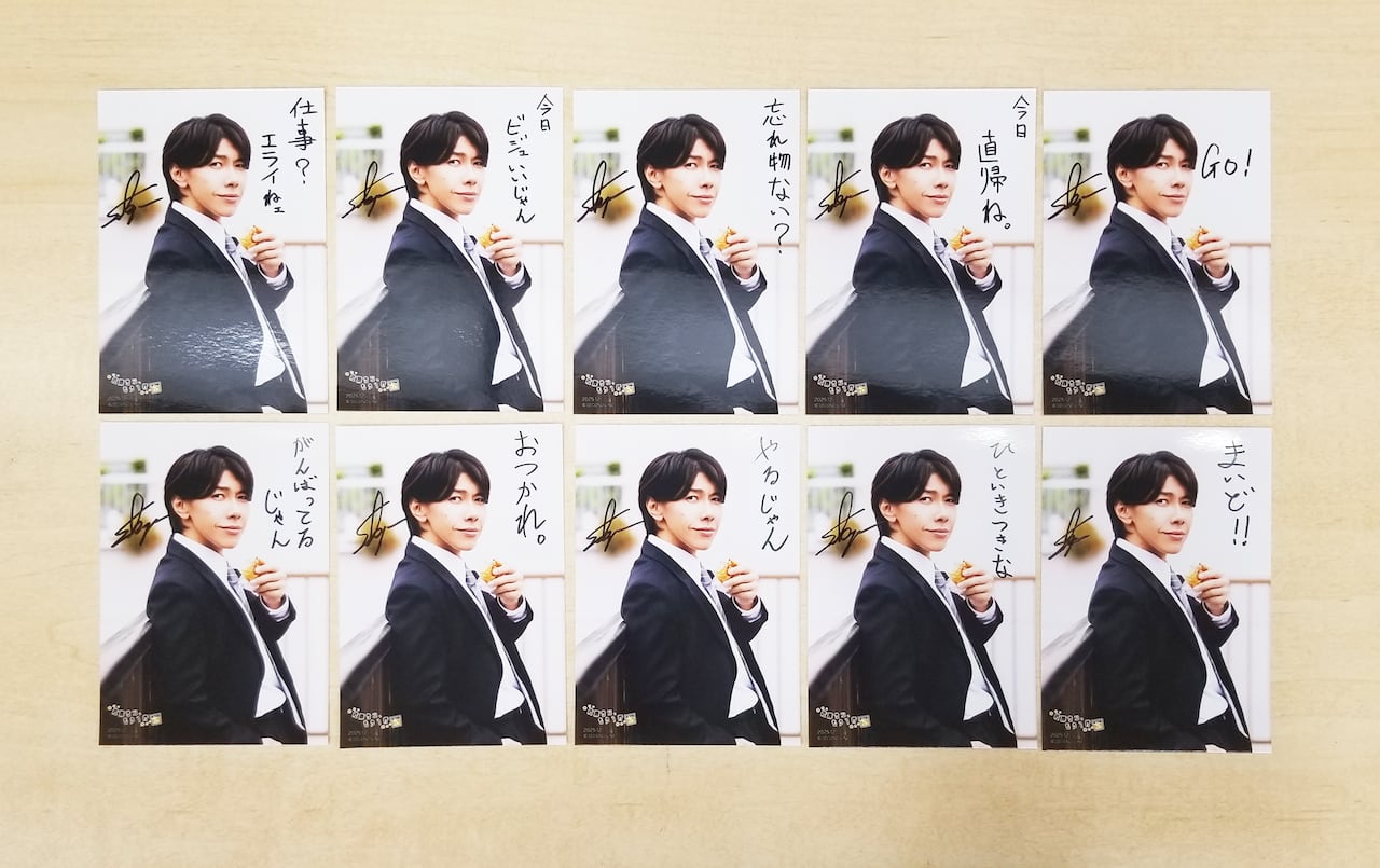 ※在庫分に直筆のサイン入り+手書きコメント入りデコレーションブロマイドが何個含まれているかはわかりません。予めご了承ください。また、手書きのため、文字の劣化(擦れやキズ、裏移りや裏写りによるブロマイドの裏側の一部剥離等)がある場合がございます。