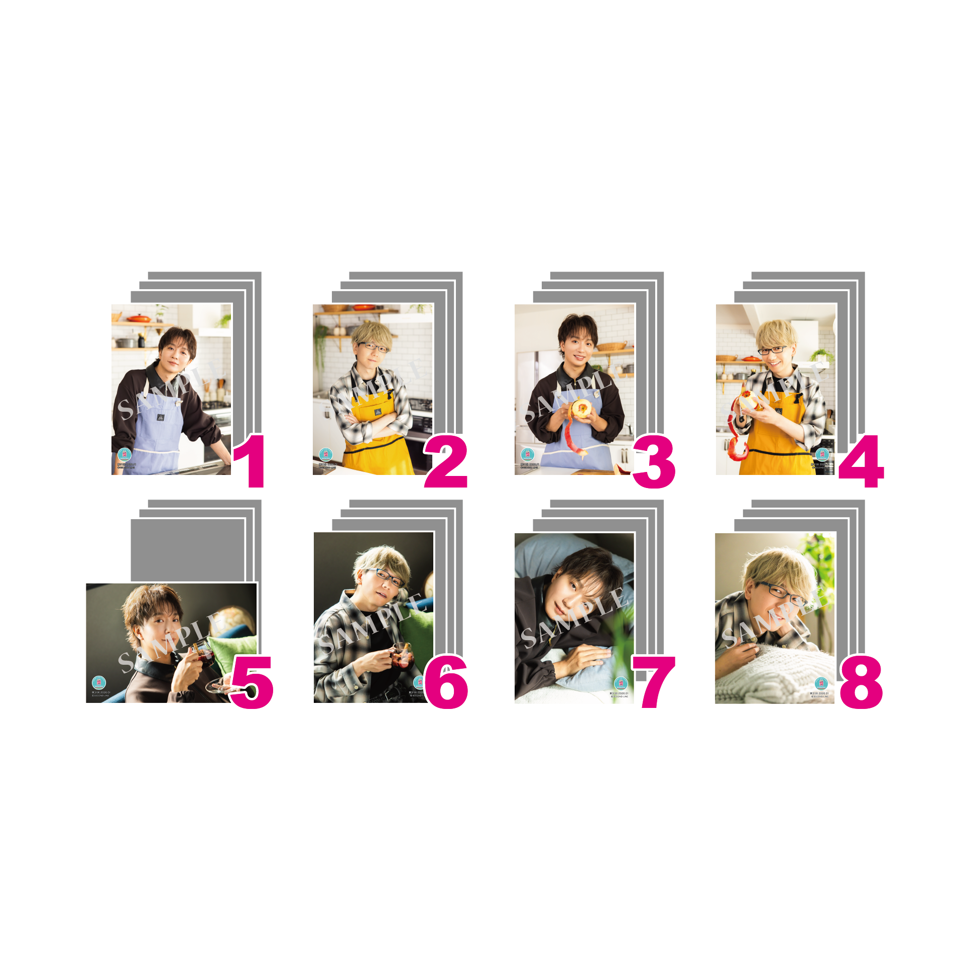 ※ブロマイドセット1、2、3、4、5、6、7、8には、出演者(中澤まさともさん、山中真尋さん)のうち、4枚の写真が含まれます(例:セット1 中澤まさともさんソロショット、山中真尋さんソロショット、中澤まさともさんソロショット、中澤まさともさん&山中真尋さんのツーショット。セット2 山中真尋さんソロショット、中澤まさともさんソロショット、山中真尋さんソロショット、中澤まさともさん&山中真尋さんのツーショット等)。